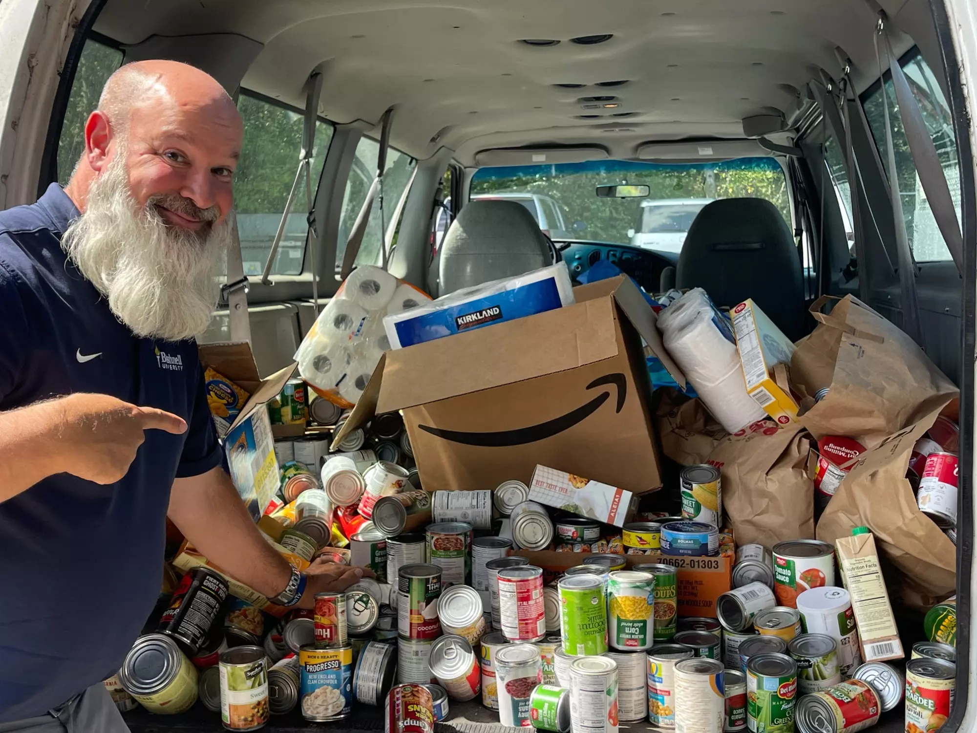 While the newcomers were busy participating at Project Hope, all Beacon returning student-athletes also gathered for the annual Bushnell Athletics Fall Service Day on Sunday. It was another incredibly successful "reverse shopping" canned food drive as teams set out across multiple neighborhoods in Eugene with shopping carts in hand, going door-to-door to collect canned food, dry goods, toilet paper, and paper towels. The teams were able to once again break their all-time record as they brought in over 1700 pounds of food. A traditional food drive to benefit FOOD for Lane County, this year's collection will also go to help open a brand new Bushnell Food Pantry, located in Womack Hall for the benefit of students in need.