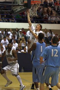 The Knights were led by Webster Moreland's game-high 24 points. Reggie Guyton scored 17 points after going 5 for 14 from behind the perimeter. Kaylone Riley fouled out after getting 10 points, 11 rebounds, and four blocks in 32 minutes. Jared Mace and Jake Glisson each added 10 points.