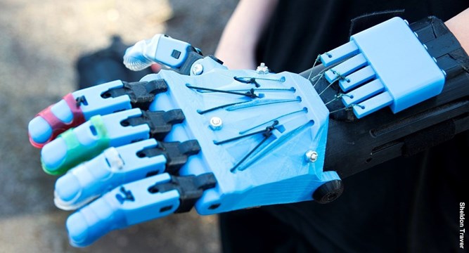 E-Nable, which is an online volunteer organization, matches children like Dawson in need of prosthetic hands and fingers with volunteers able to make them the hands on 3D printers. Incredibly, the designs can be downloaded into these 3D-printing machines for no charge, and members who create new models simply share their software plans freely with others.